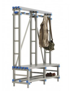 Châssis et tubes porte manteaux fabriqués en tube d'acier de 1,5mm d'épaisseurPeint avec peinture Epoxy polyester en poudre gris ral7035Structure soudée Lames en pin verni (90 mm de large x 16 mm d'épaisseur)Porte manteaux avec crochets fabriqués en zamak Prix de base , pour plus de renseignements contactez-nous.
