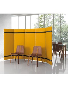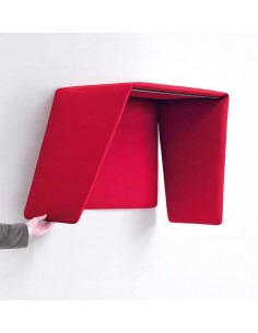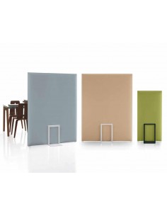 Pli Oversize est un cloison phono-absorbant composé de panneaux Snowsound, soutenu par un chevalet en acier.Il est possible d’unir les panneaux entre eux à l’aide d’une courroie qui englobe le panneau, munie de boutons en acier et de boutonnières permettant d’obtenir des solutions linéaires, des solutions en forme de “T”, de “L” ou de “X”.