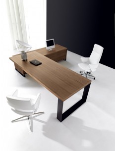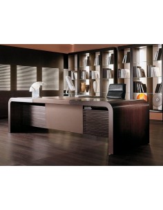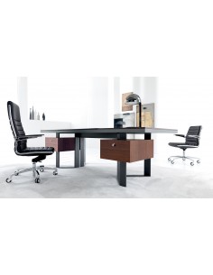 Bureau de direction Taiko en finition bois (Chêne teinté foncé, Frêne laqué noir, Zébrano) ou en finition laqué brossé (blanc poli ou gris asphalte poli). Extrêmement soucieux du détail, TAIKO est un mobilier« cultivé" qui répond pleinement aux exigences de fonctionnalité que doit avoir un mobilier de bureau.