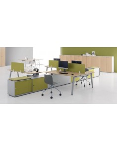 Ligne opérative qui se distingue particulièrement par sa simplicité essentielle.Actuelle dans les concepts fondamentaux du travail de bureau, extrêmement fonctionnelle dans les postes de travail partagés. Plateau - Réalisé en conglomérat de bois épaisseur 18 mm avec revêtement mélamine blanc, noyer, chêne clair, chêne tabac, chêne foncé, gris clair,...