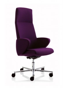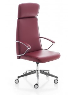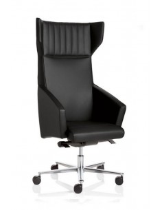 Fauteuil de direction - Dossier moyen, haut ou bas- Accoudoirs garnis et revêtus intégrés dans le structure de la coque- Mécanisme synchrone assise/dossier avec régulateur de tension- Différents piètements et revêtements en option