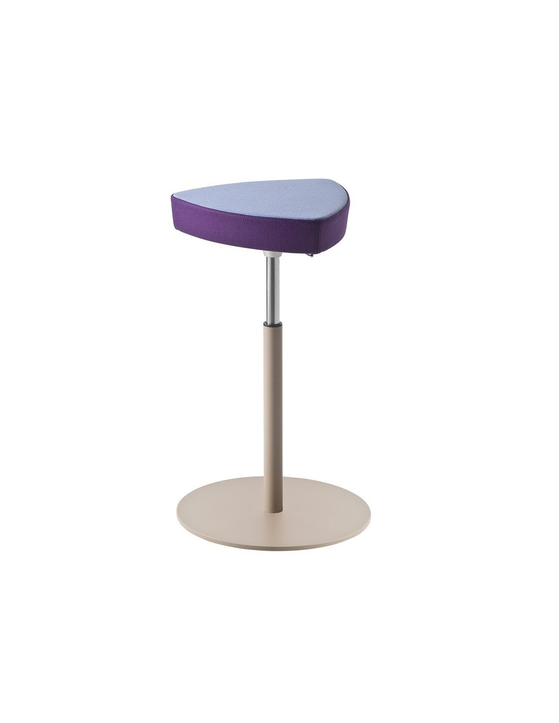 Tabouret pivotant avec assise en forme de triangle arrondi disponible en différents revêtements (unicolore ou bi-colore).